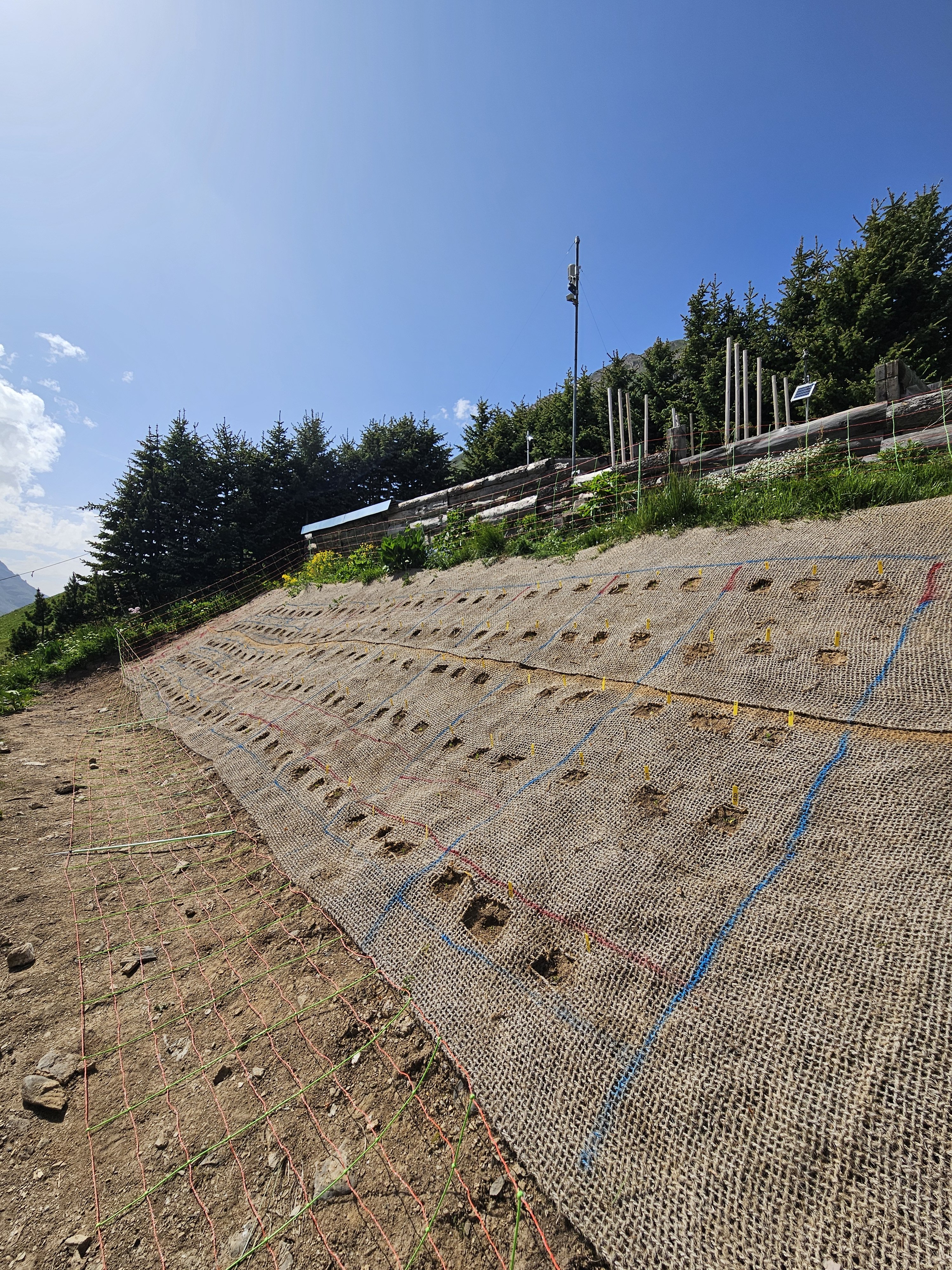 Ces travaux se déroulent sur la commune de Villar-d’Arène. Ils ont été conçus par les chercheurs d’INRAE avec le soutien du Conservatoire botanique national alpin et de Phytosem. Cette expérimentation a été financée par le programme de recherche sur les Solutions fondées sur la Nature (SOLU-BIOD) dans le cadre du living lab VIVALP.