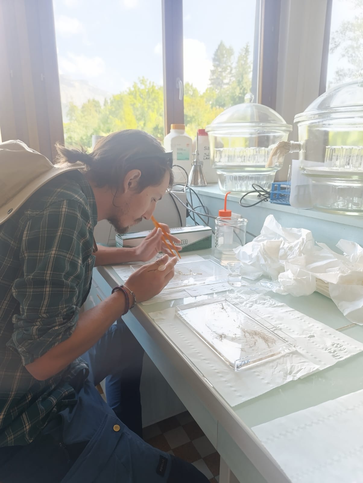 Cette semaine, Taïna et Thomas ont sorti les plantes des 80 pots d’INRAE (les 80 pots témoins ayant été dévorés !) pour analyser leurs biomasses et racines. Au programme : les laver, trier, scanner puis les passer dans un logiciel de mesures de traits. Un long travail d’équipe en musique !